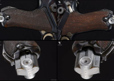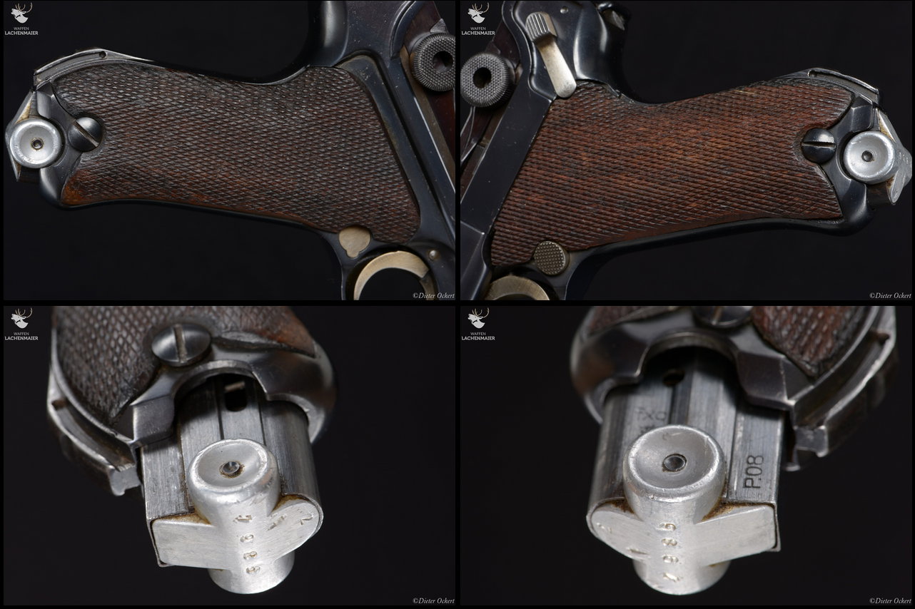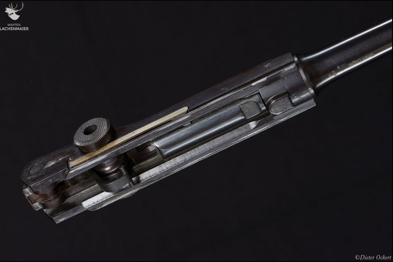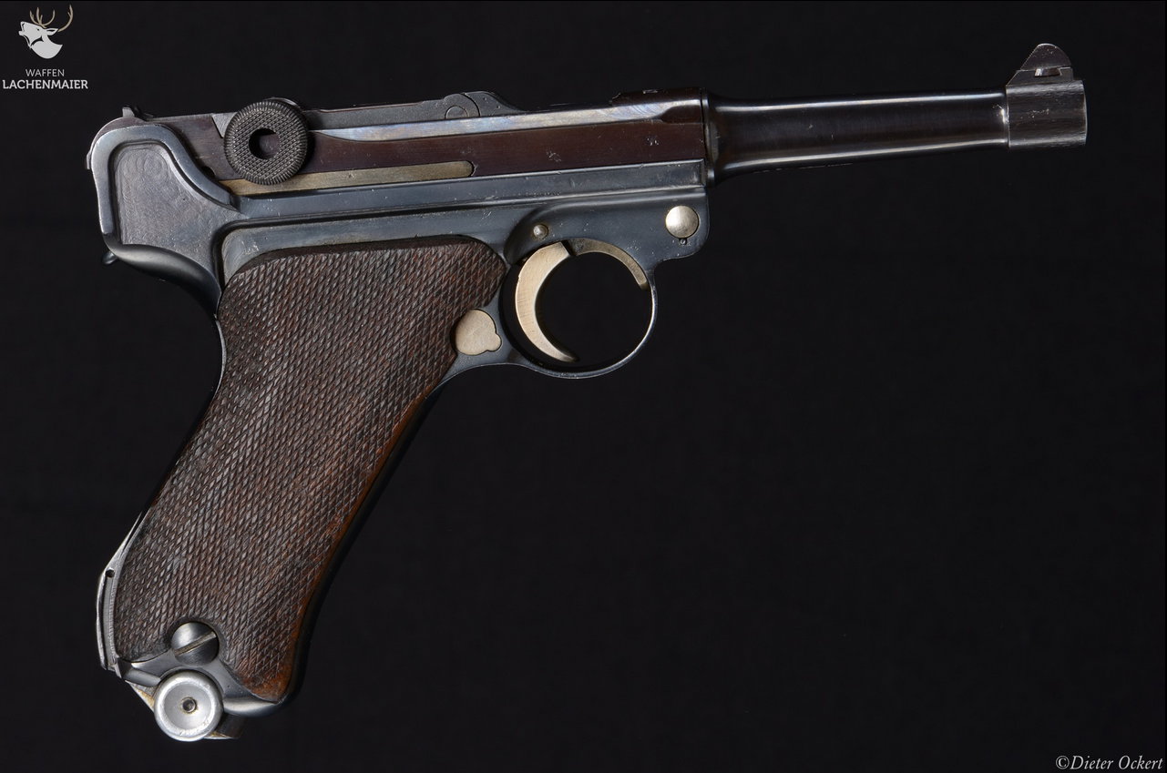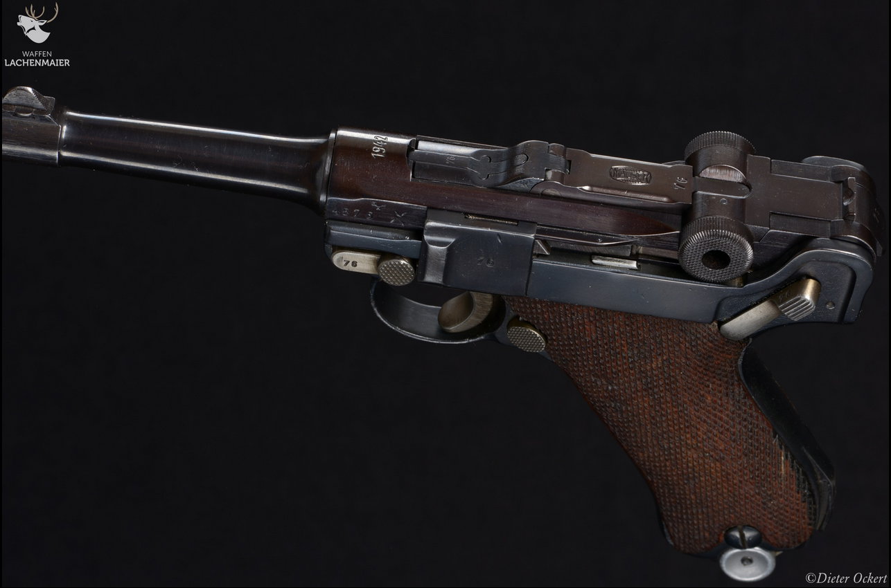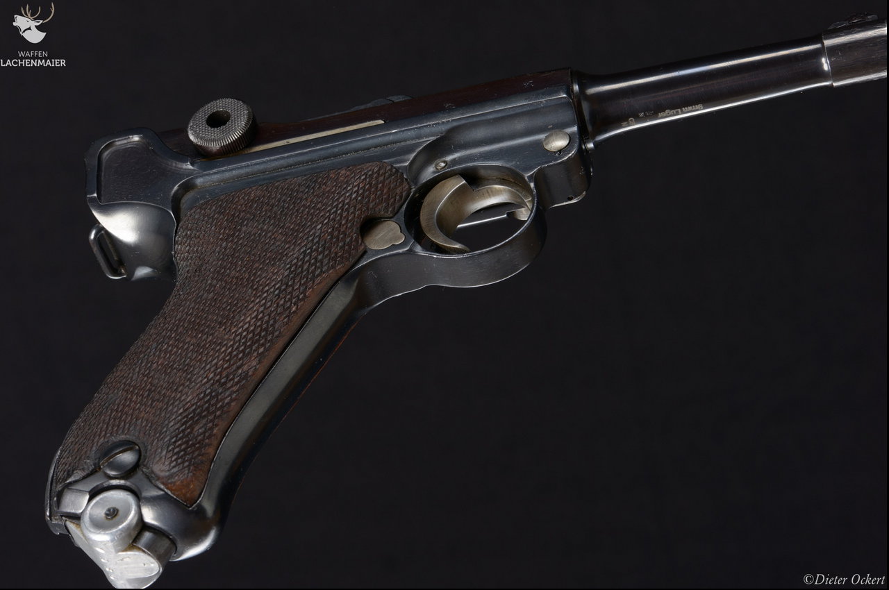 The pistol was usually very well made, and in its day it was one of the most reliable self-loading weapons. The main disadvantage was the relatively high production cost, unsuitable for a service weapon. The pistol was produced in many variants. Examples, original leaf return spring, model short frame, no palm safety, direction of operation of manual safety same as P.08, return spring wound). P.08 originally without the possibility of attaching a stock, during production (after the LP.08 was introduced to facilitate production) the possibility of attaching a stock was retained, barrel length 100mm, calibre 9 mm Luger. LP.08 – barrel length 203 mm, extension stock, adjustable tangential eight-position sight with adjustment of shooting distance (theoretical) up to 800m, first model with possibility of correction of sight and sights by screws, second model simplified without possibility of correction. From 1938 onwards, it was slowly replaced by the new German Walther P 38 pistol, which was much simpler and cheaper to produce.